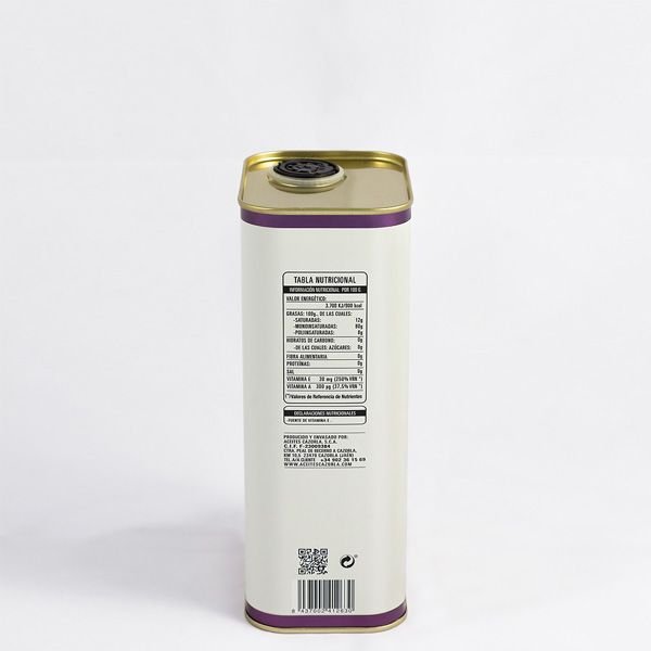 - Forma: tvirta metalinė skardinė, apsauganti aliejų nuo šviesos ir oro.